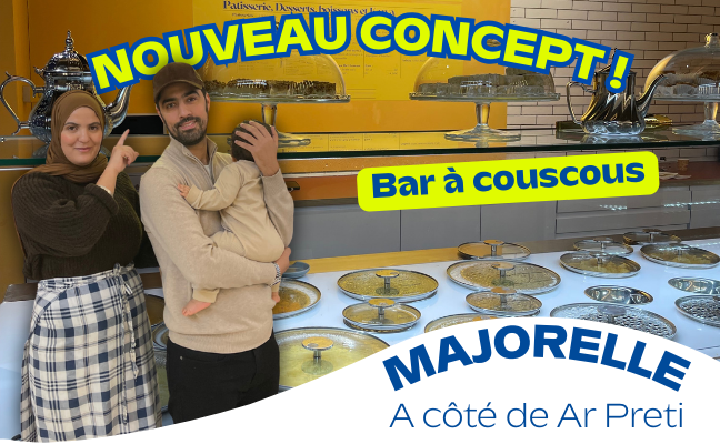Un nouveau concept est arrivé à B’EST ! Un bar à couscous. Chez MAJORELLE, laisse toi tenter par un délicieux couscous que tu peux composer toi même ! Choisi ta viande (